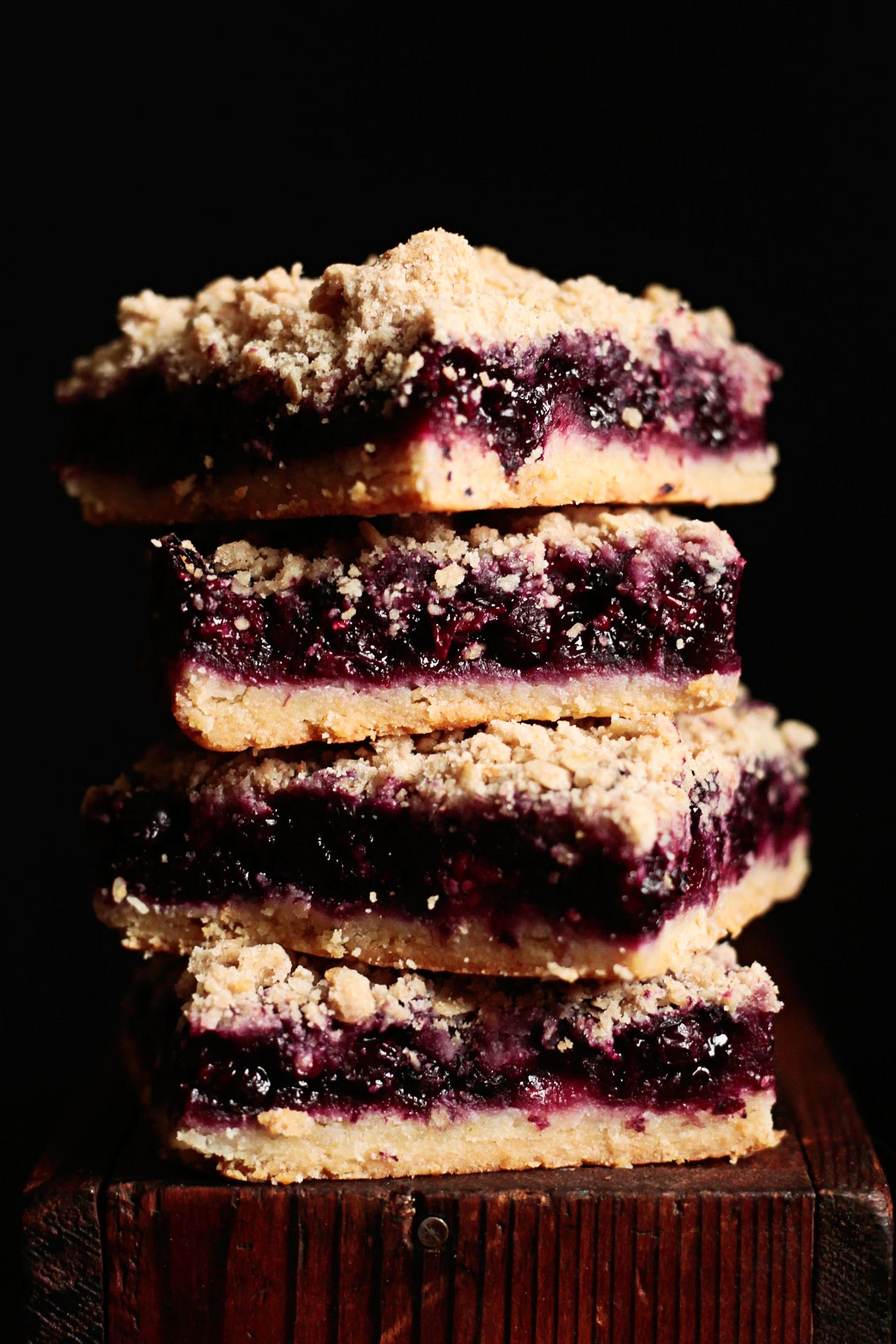 Bake your bars at 350 degrees for 50-60 minutes until golden on top and the berry filling is bubbling. You can also take the temperature of the blueberry layer, which should be between 200-210 degrees, to make sure it’s to the point needed for them to be fully set when cooled.